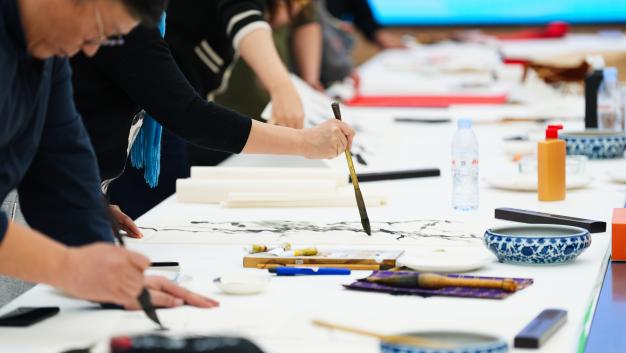 交流座谈环节,双方围绕文化建设成效、书画艺术传承发展及企业发展深度融合等话题深入探讨。活动紧扣“墨韵凝心,同心聚能”的主题,在思想碰撞中凝聚发展共识,进一步夯实了同心携手共进的思想基础,以笔墨为媒画好协同发展“同心圆”。